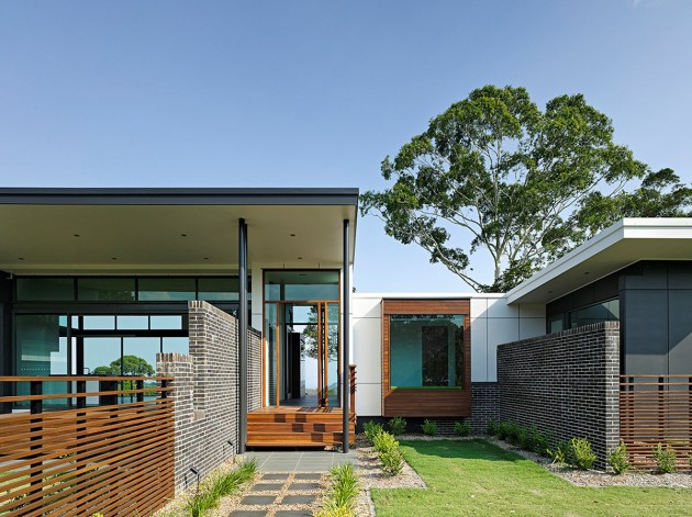 Участок размером в около 5000 квадратных метров – пространство, которого достаточно для того, чтобы не чувствовать себя скованно и зажато. Вытянутая конструкция жилища в виде павильонов позволяет насладиться множеством прекрасных видом на горы. Даже изнутри человек может насладиться красотой местности. Легкое ощущение приземленности и единения природы достигается за счет плоской крыши.
