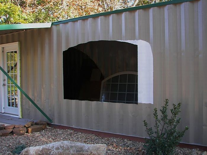 И вот, как дом из контейнеров выглядит снаружи. Кому не нравится такой стиль, можно отделать фасад дома сайдингом и соорудить скатную крышу.