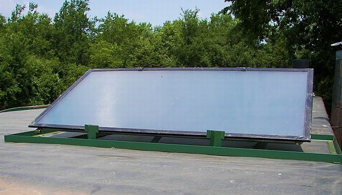 Для обеспечения горячего водоснабжения используется самодельный солнечный коллектор.
